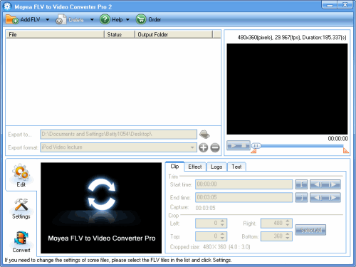 Once Moyea FLV to Video Converter Pro 2 is installed, launch the converter program.